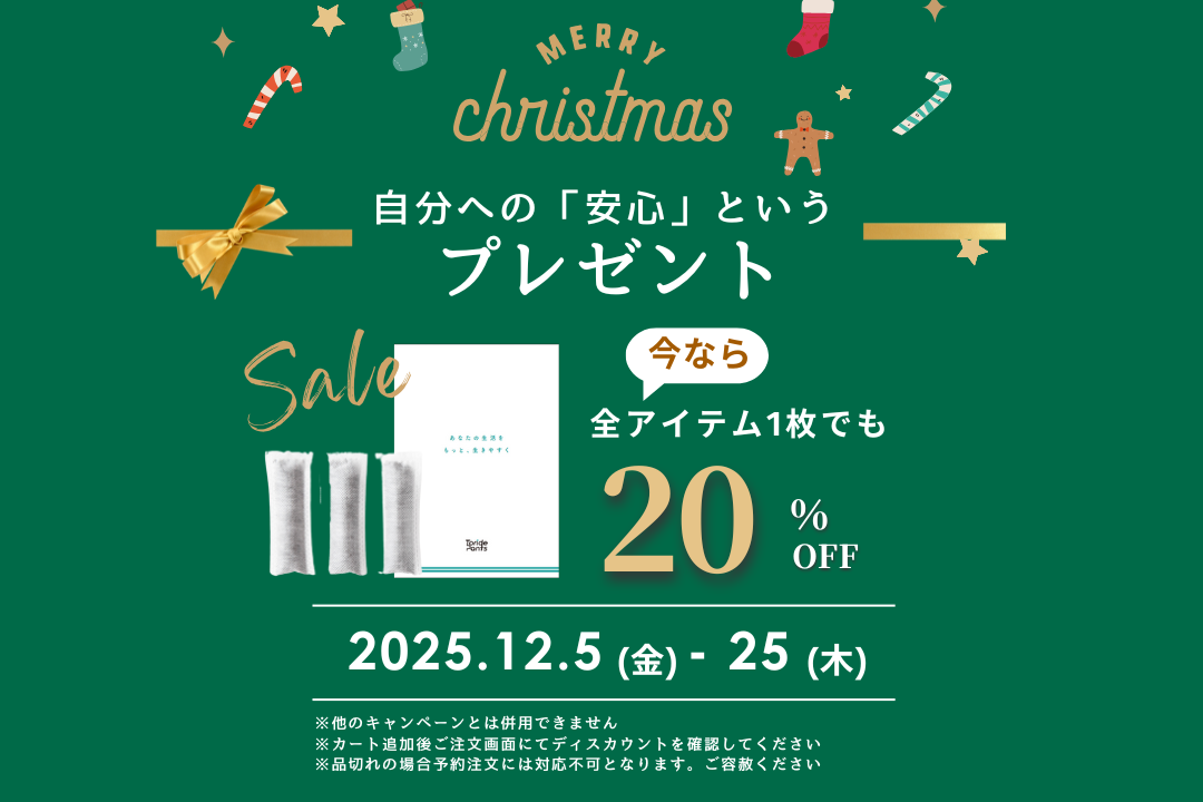 2025年12月5日(金)~25日(木)までクリスマスセールを開催中。全品対象!何枚購入しても通常販売価格から20%OFF!ぜひ、この機会にお買い求めください。(配送料は別)